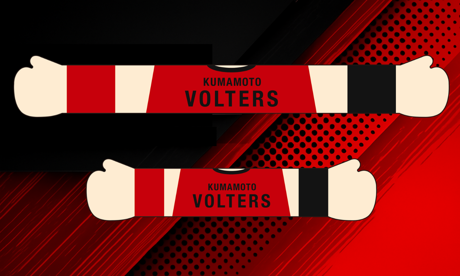 手を入れて使うユニークなマフラータオル。ヴォルターズのフリースロー時には、ぼるたんと一緒に「Vきゅうぽーず」で、選手にパワーを送ろう!