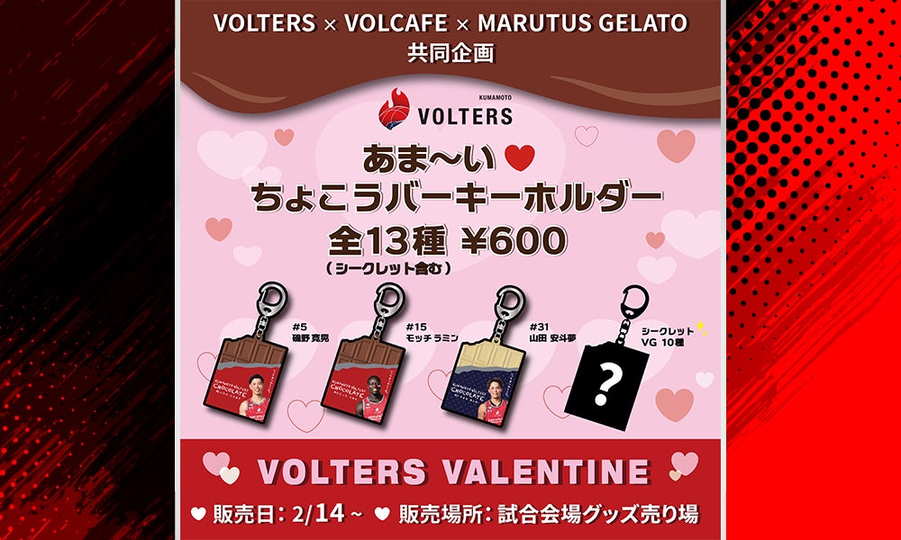 バレンタインをイメージした特別デザインの「応援ハリセン」を各日先着3000名様にプレゼントします。あなたの熱い熱い気持ちを込めたクラップで選手を後押ししましょう!
