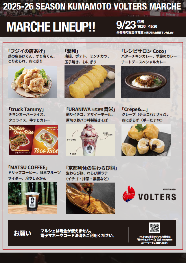 いつも熊本ヴォルターズへ温かいご声援をいただき、ありがとうございます。