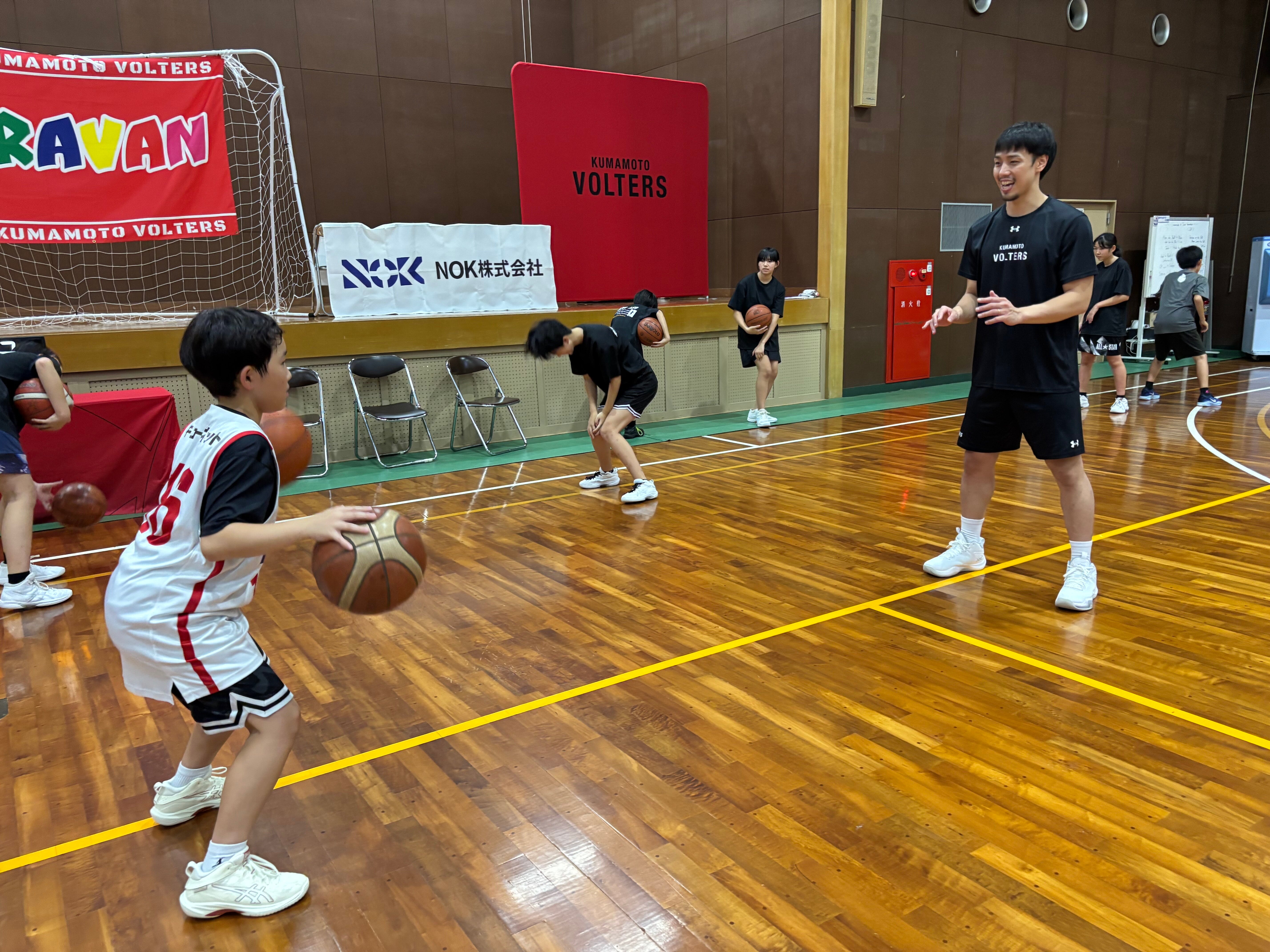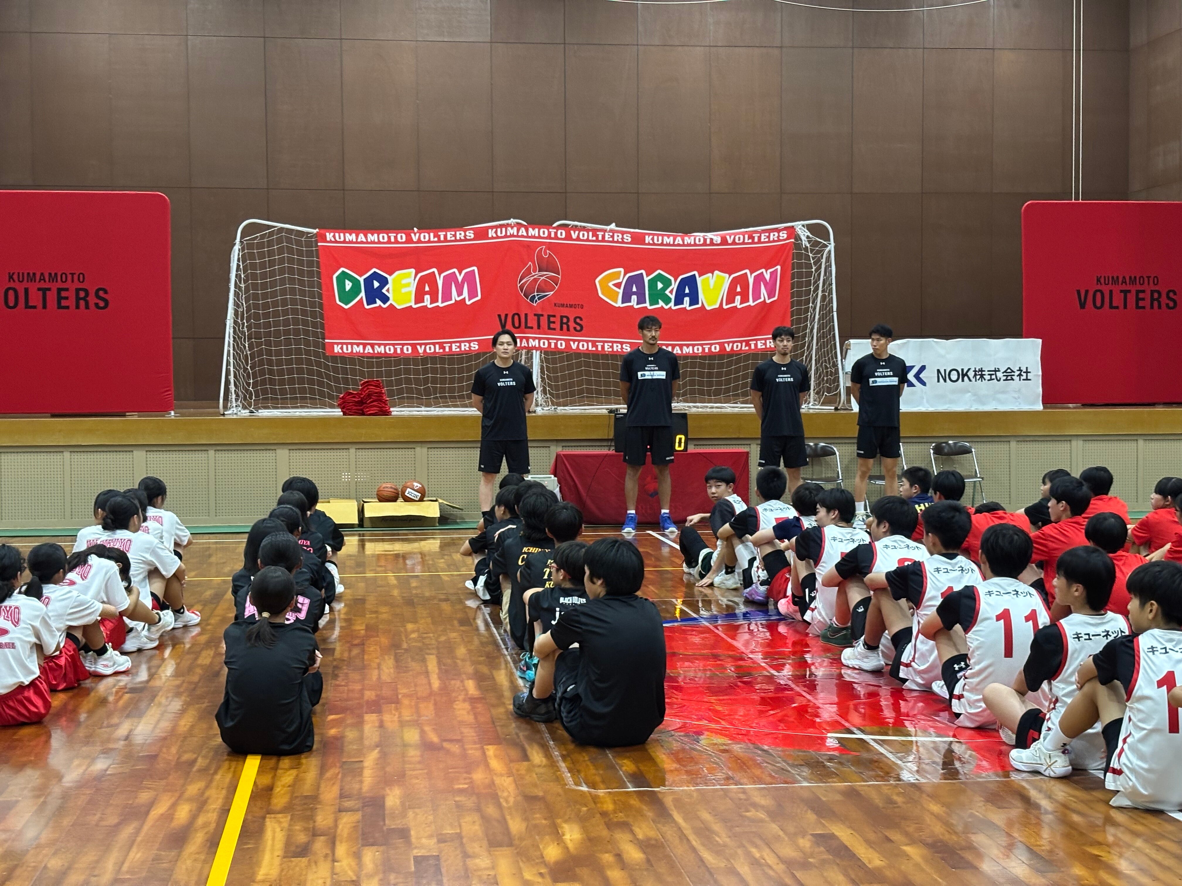 企業や自治体にパートナーとしてご支援いただき、選手やスタッフを派遣して地域の子ども達にバスケットボール教室行うことを『ドリームキャラバン』と呼んでいます。