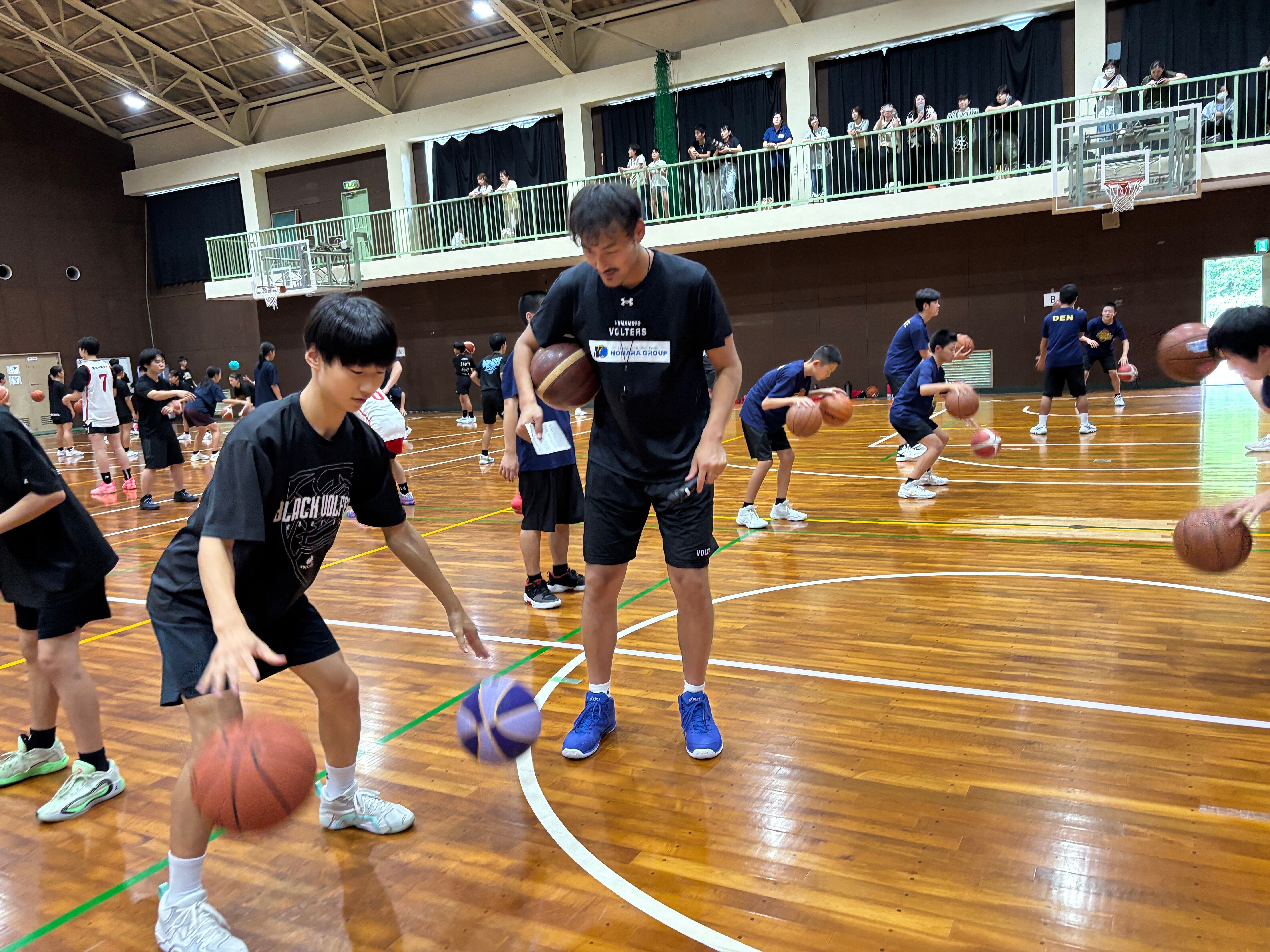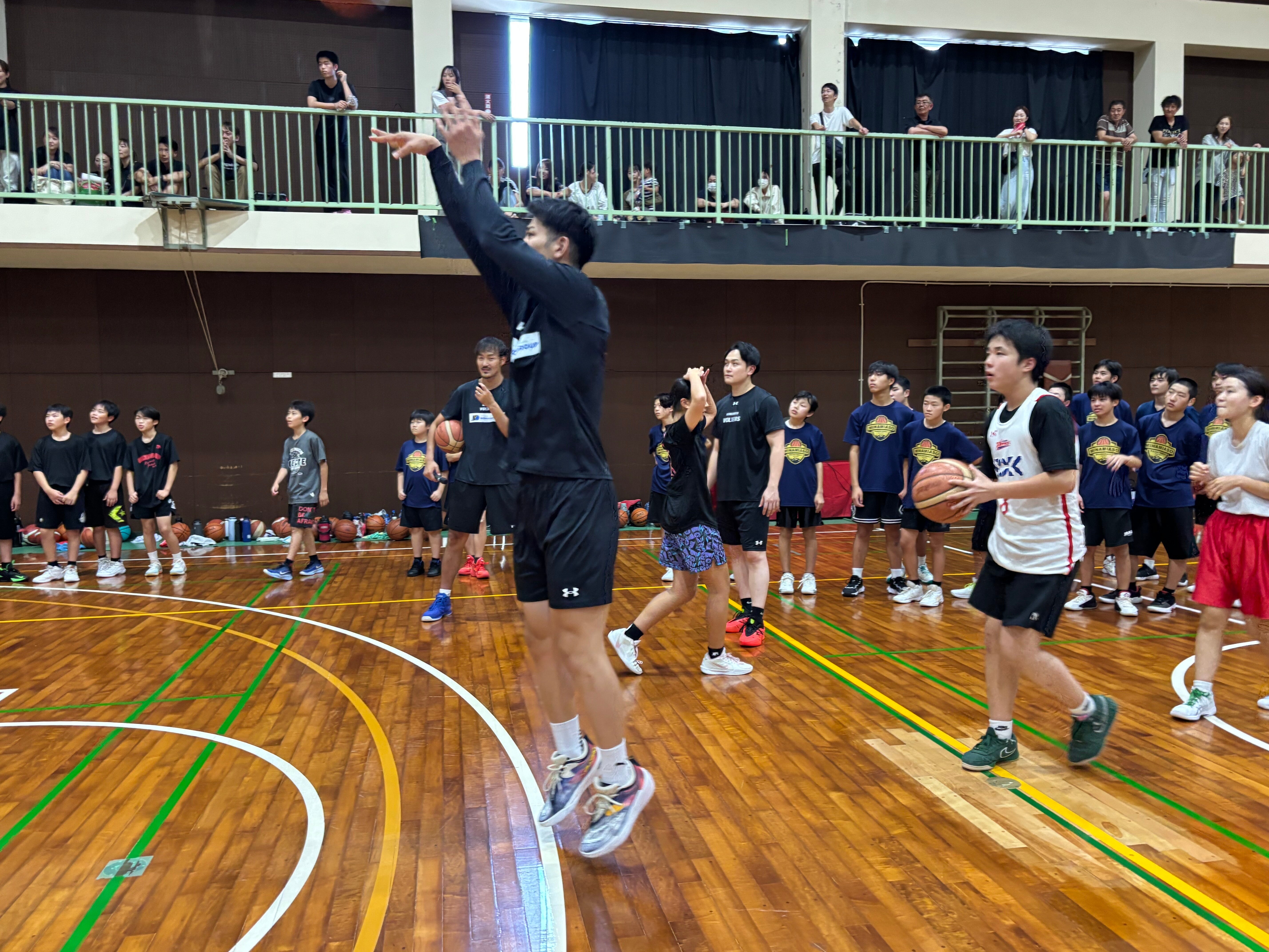 練習後の質問コーナーでは「怪我から復帰するときのモチベーションについてや、抜かれないコツ、バスケットボールの面白さなど子どもたちからたくさんの質問があり大変盛り上がりました。