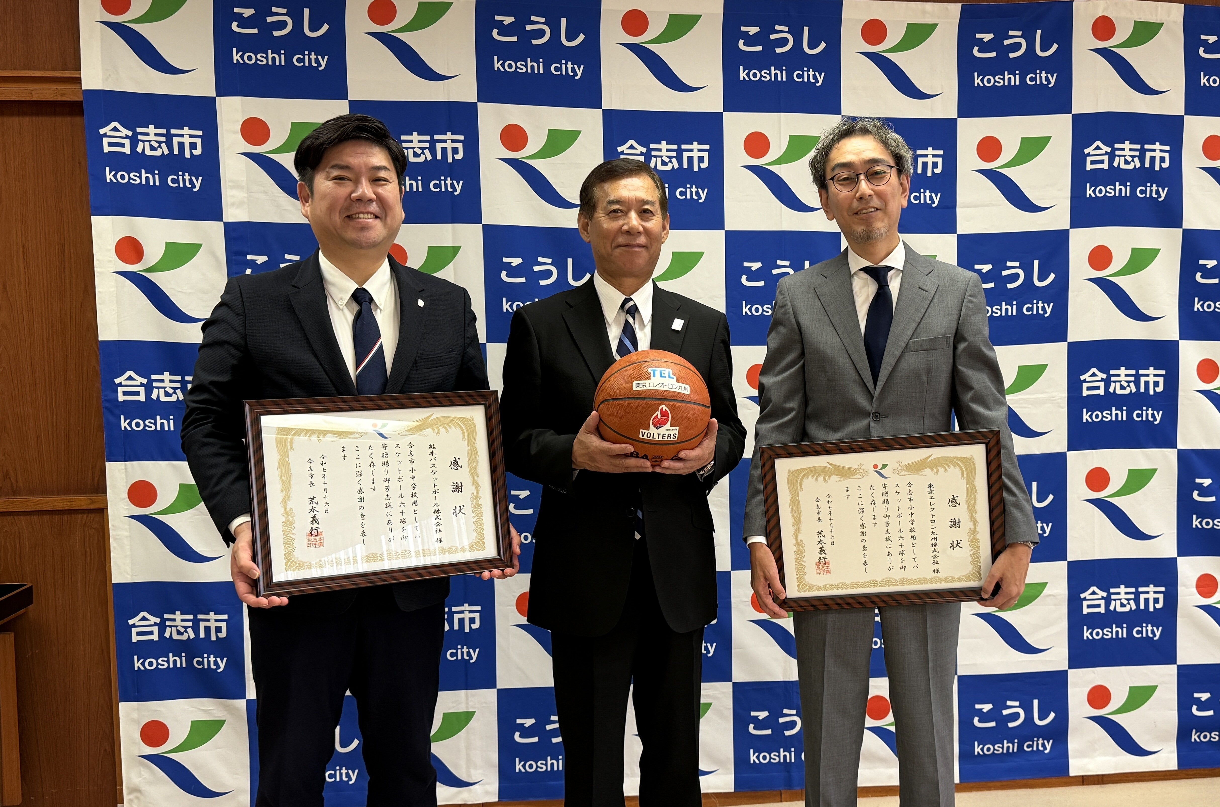 また、バスケットボールの寄贈に対し、合志市から東京エレクトロン九州株式会社様および熊本ヴォルターズ運営会社の熊本バスケットボール株式会社へ感謝状が贈呈されましたのでご報告いたします。