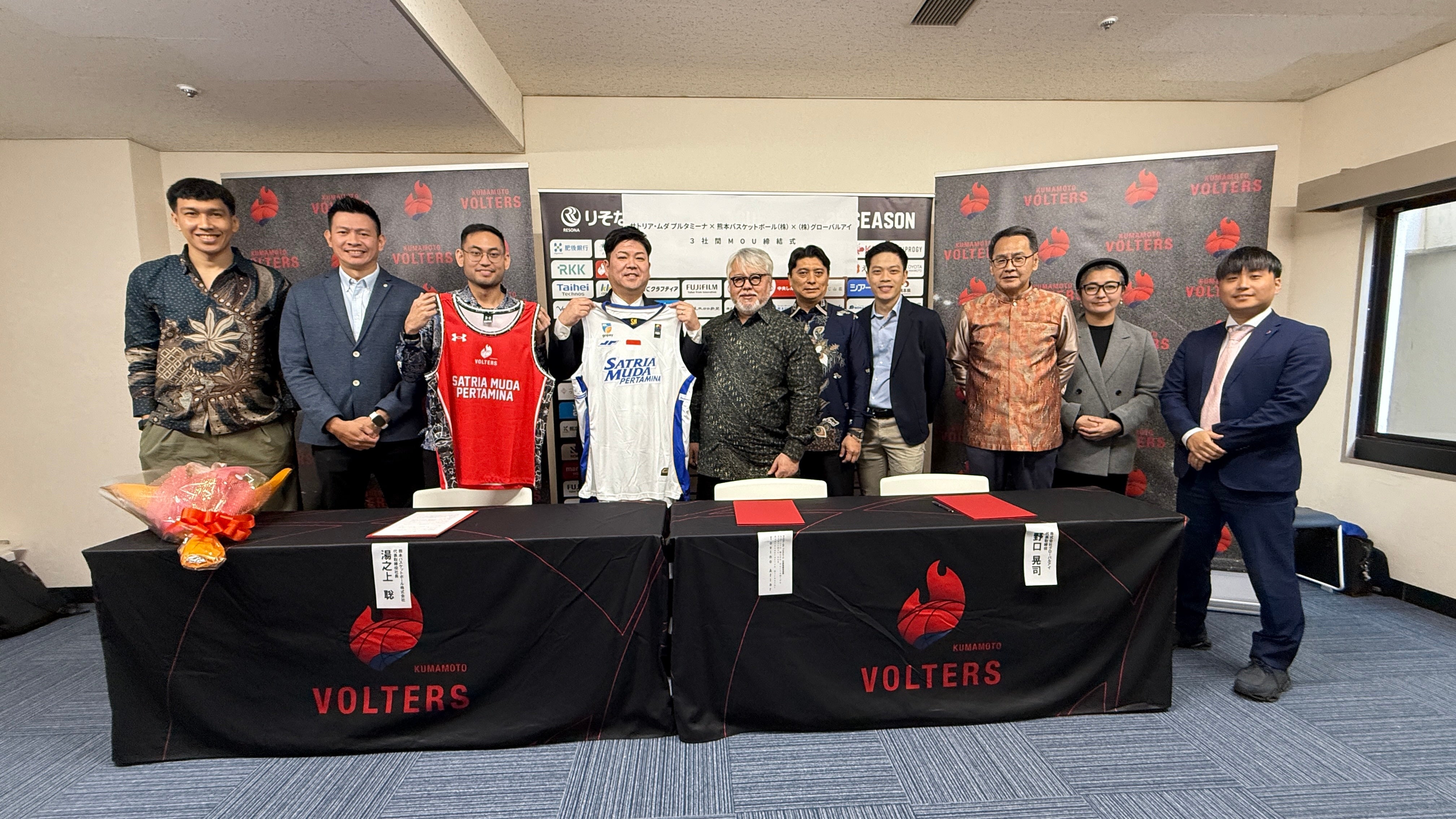 熊本ヴォルターズは、株式会社グローバルアイ(本社:東京都新宿区/代表:野口 晃司 氏)の仲介のもと、インドネシアのプロバスケットボールチーム「サトリア・ムダ プルタミーナ(Satria Muda Pertamina)」と、双方の文化交流および地域振興、スポーツを通じた人材育成を目的としたMOU(覚書)を締結しました。