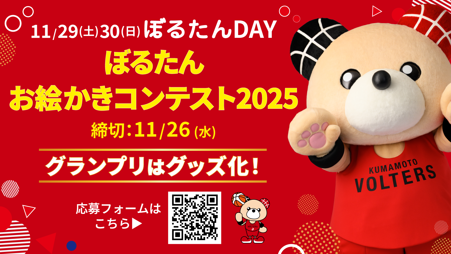 このたび、熊本ヴォルターズでは、2025年11月29日(土)、30日(日)に開催したホームゲームでの『ぼるたんDAY』に於きまして『ぼるたんお絵かきコンテスト2025』を開催しました。