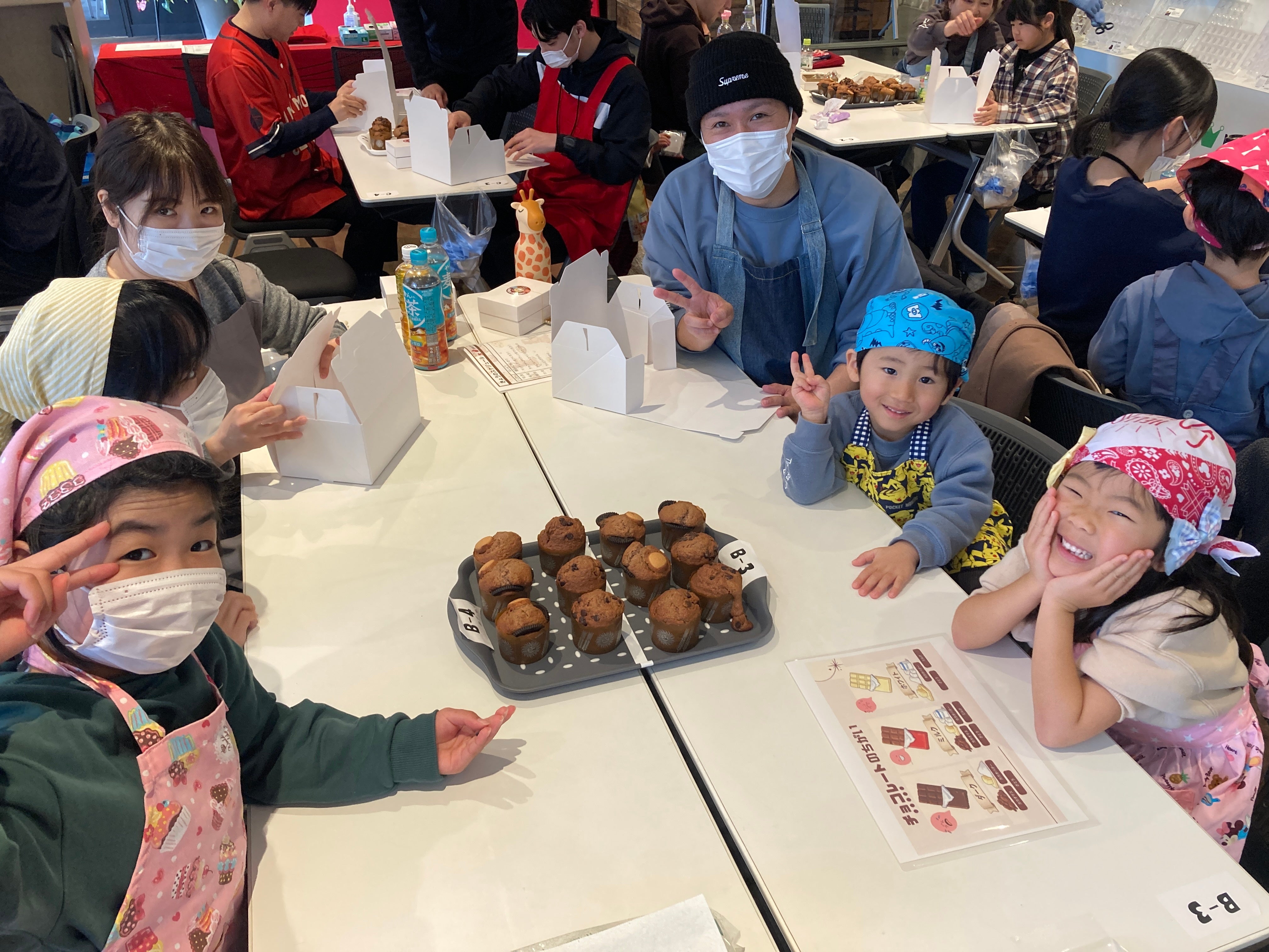 このたび、熊本ヴォルターズでは、株式会社丸菱ホールディングスのご協力のもと、食育事業の一環として、事前応募いただいた親子18組を対象にマンディアンとチョコチップマフィンづくりを行いました。