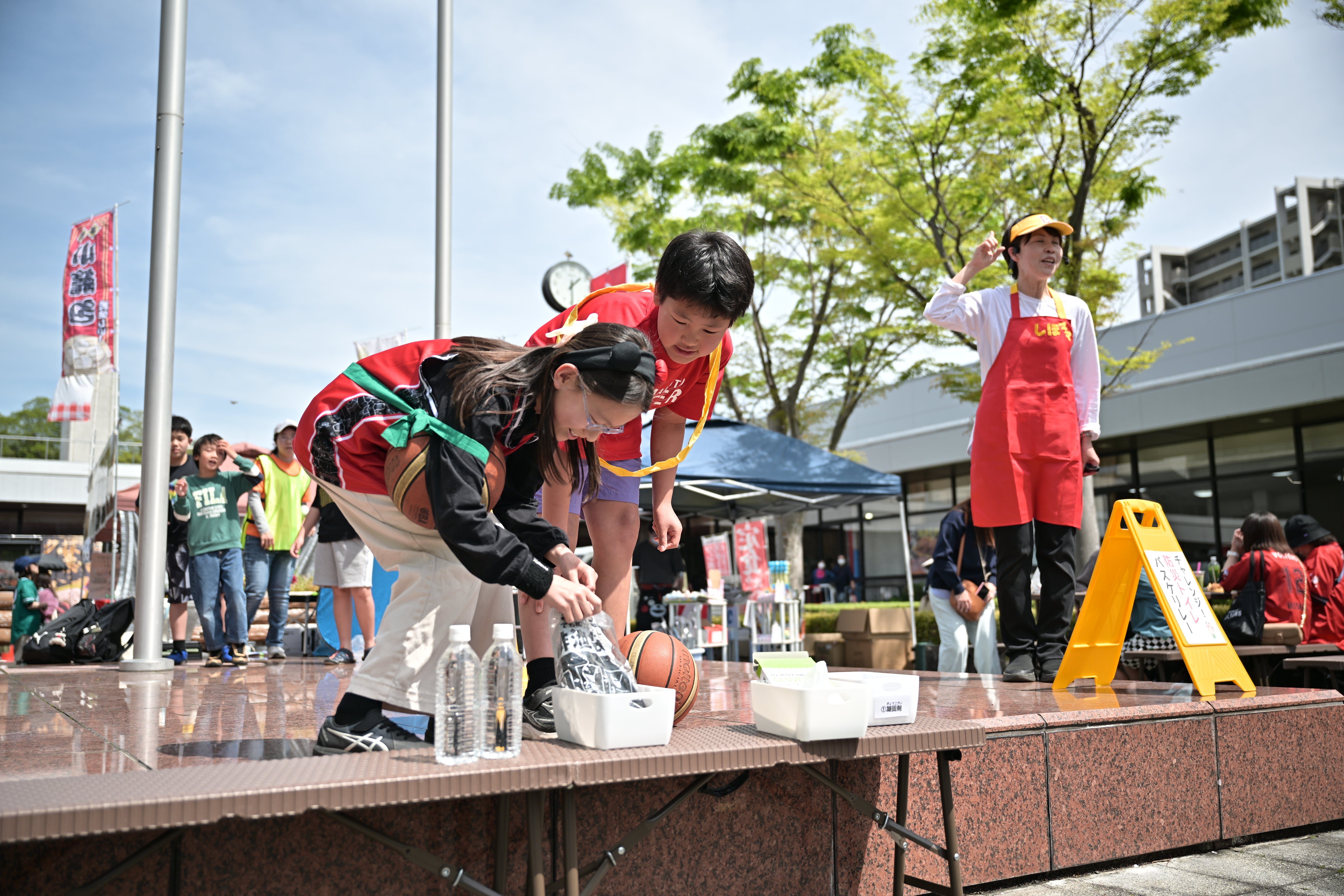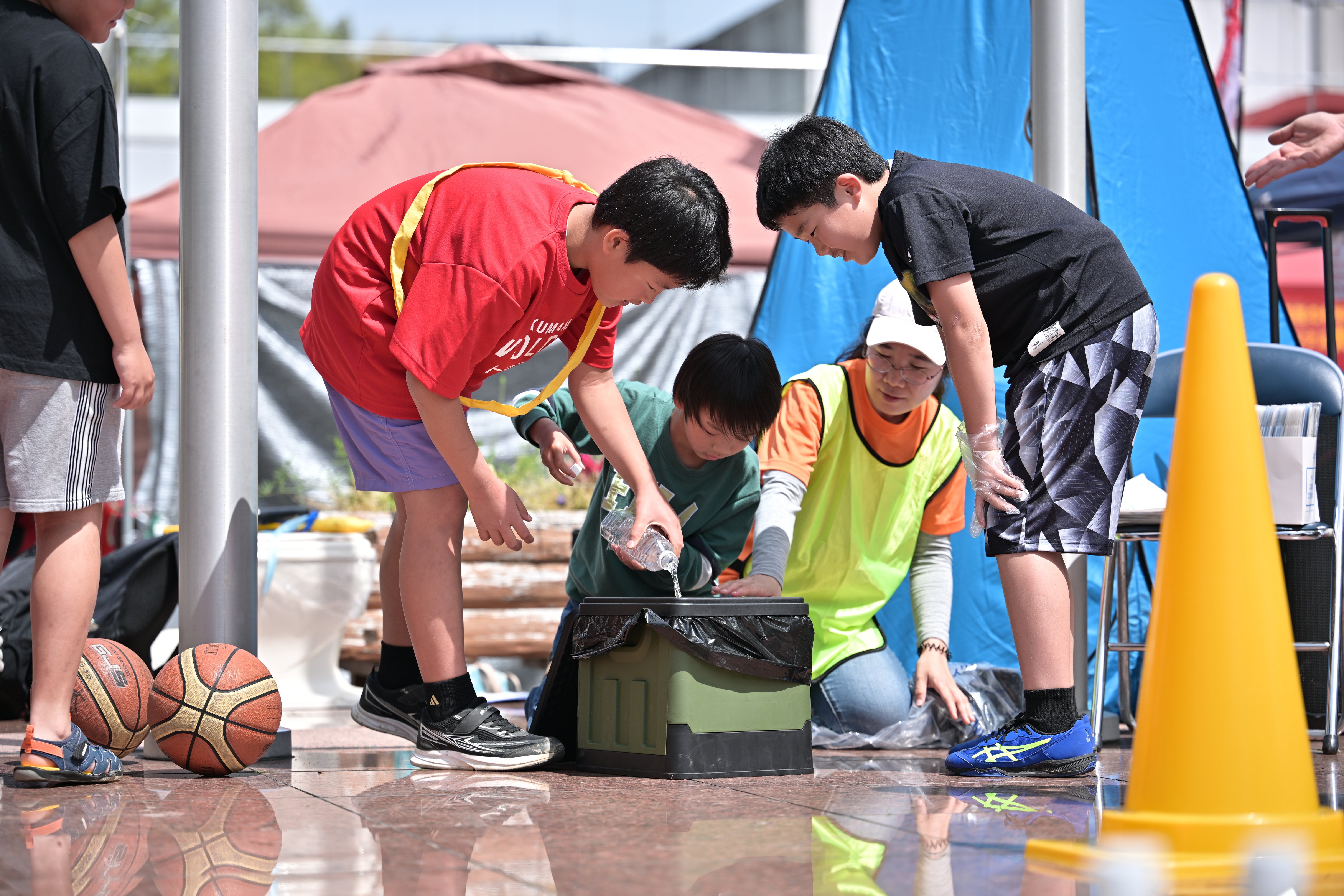 歌う防災士しほママを迎え、子どもたちがチームで挑戦したのは「防災トイレ作り」を組み込んだ「防災トイレバスケリレー」「いざという時に動ける力を」というコンセプトのもと、「防災において大事なこと」と「バスケの楽しさ」が融合した体験型プログラムに、学びとともに笑顔が溢れました。
