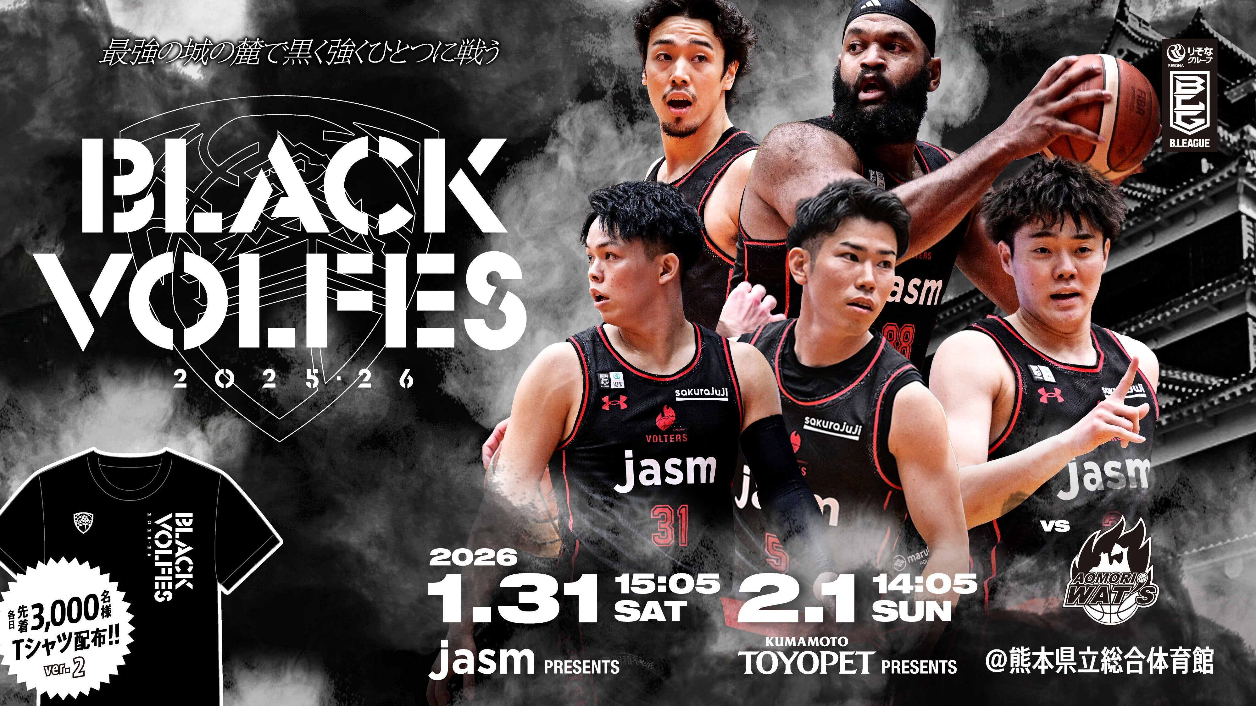 この度、熊本ヴォルターズでは、1月31日(土)・2月1日(日)に開催される「BLACK VOLFES(ブラックヴォルフェス)」に合わせ、熊本城の復興を願い、城とアリーナを繋ぐ特別企画として「ヴォルターズ選手を探せ!QRコードラリー」を実施する運びとなりました。