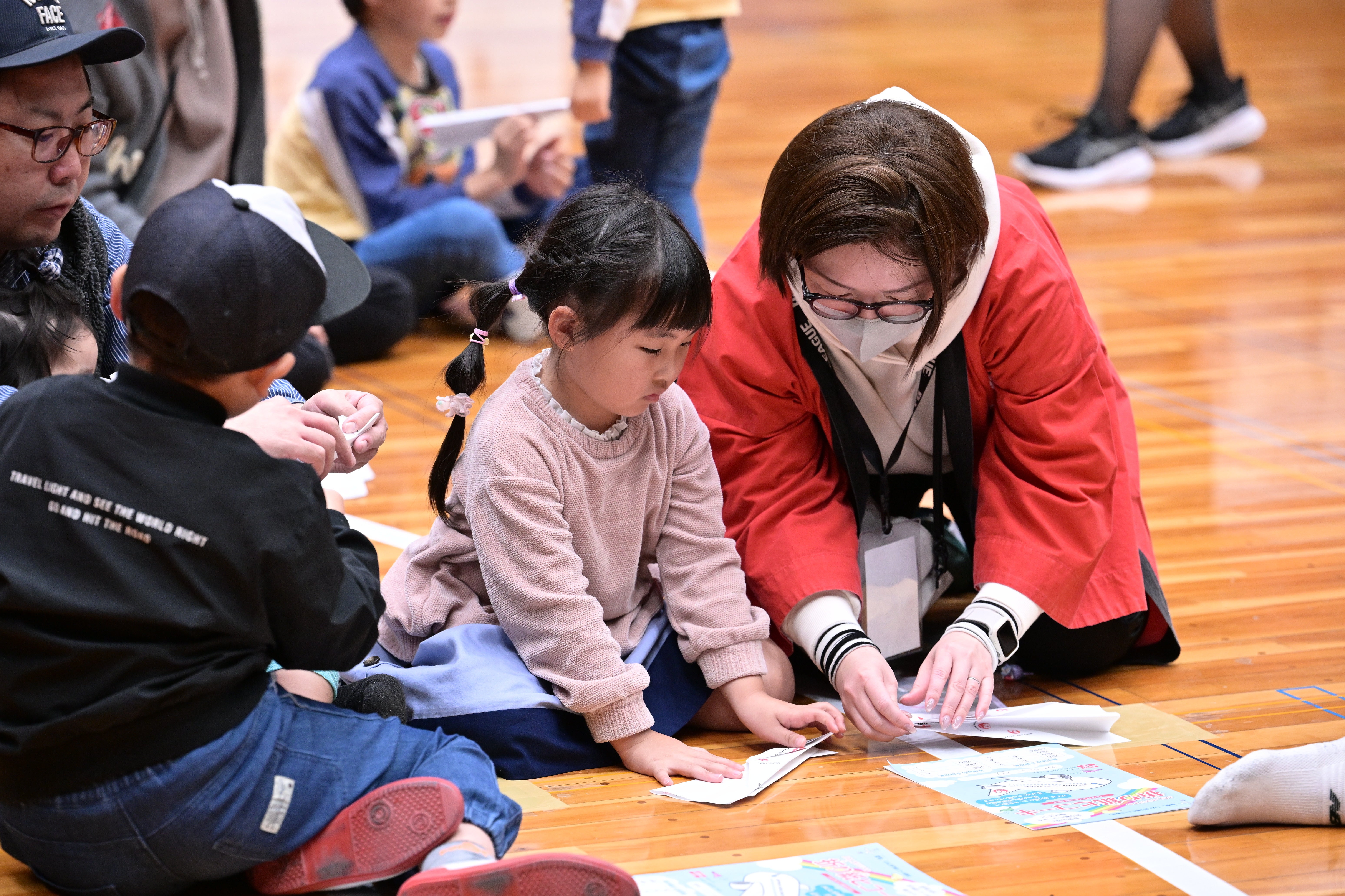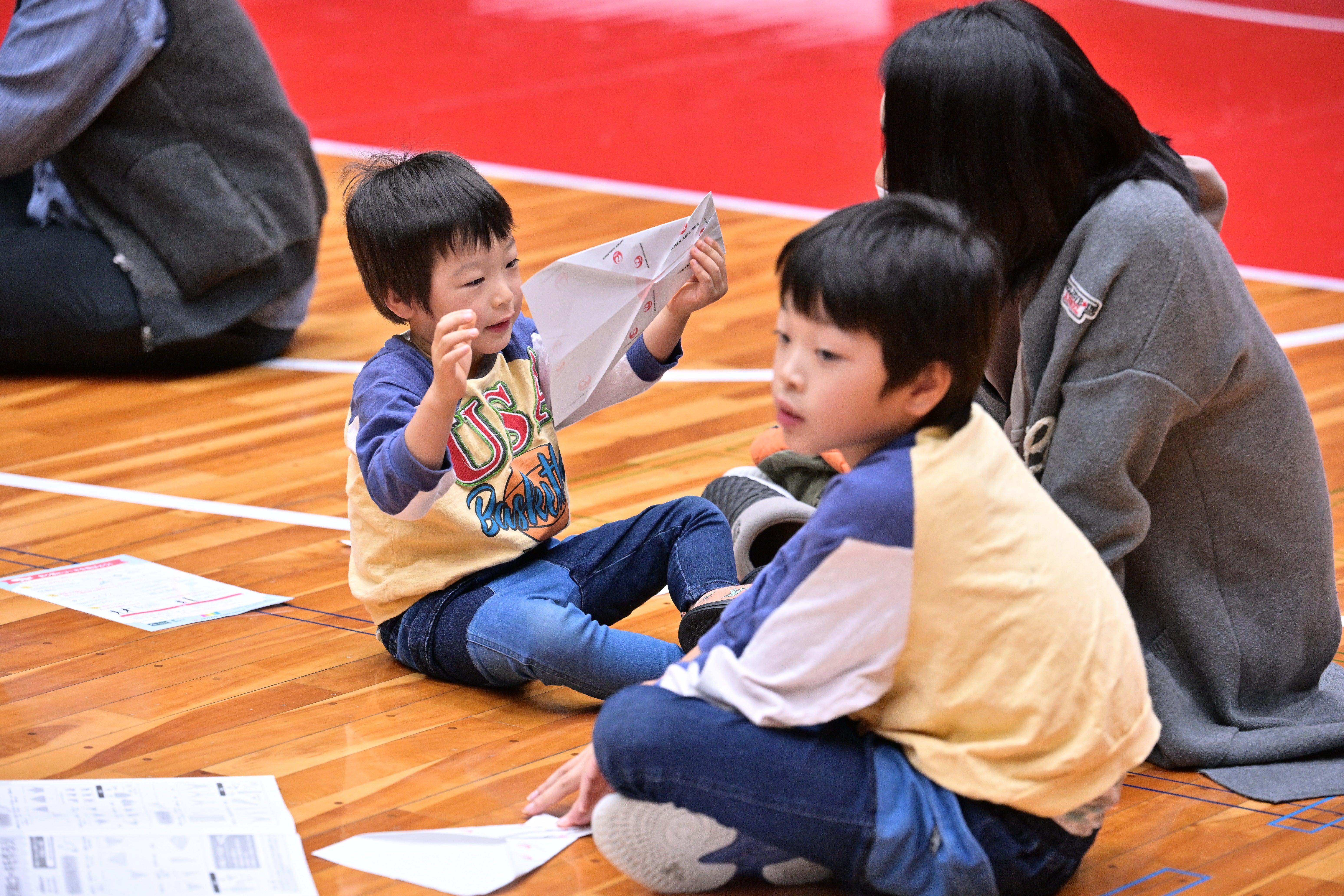 4歳から小学6年生のお子さまと保護者の皆さまにご参加いただき、JALグループ「折り紙ヒコーキ協会認定指導」の指導のもと、試合会場という特別な空間で、親子で折り紙ヒコーキを折って飛ばす楽しいひとときを過ごしました。