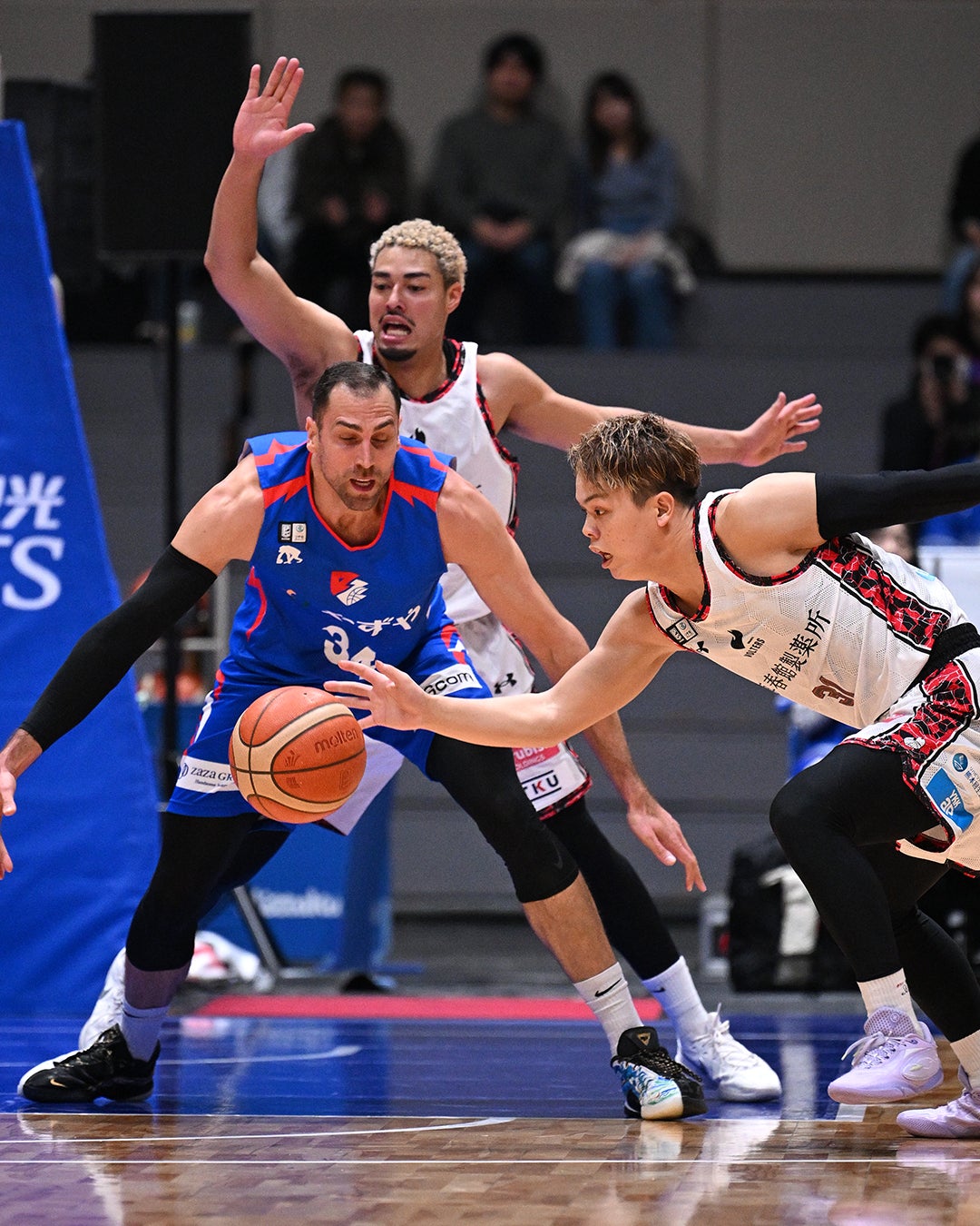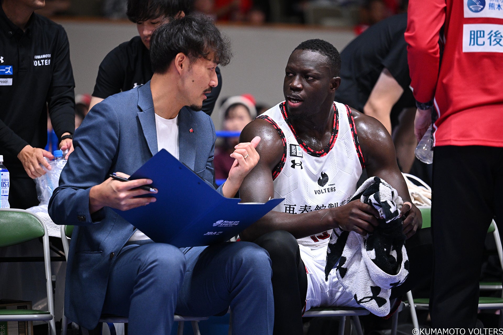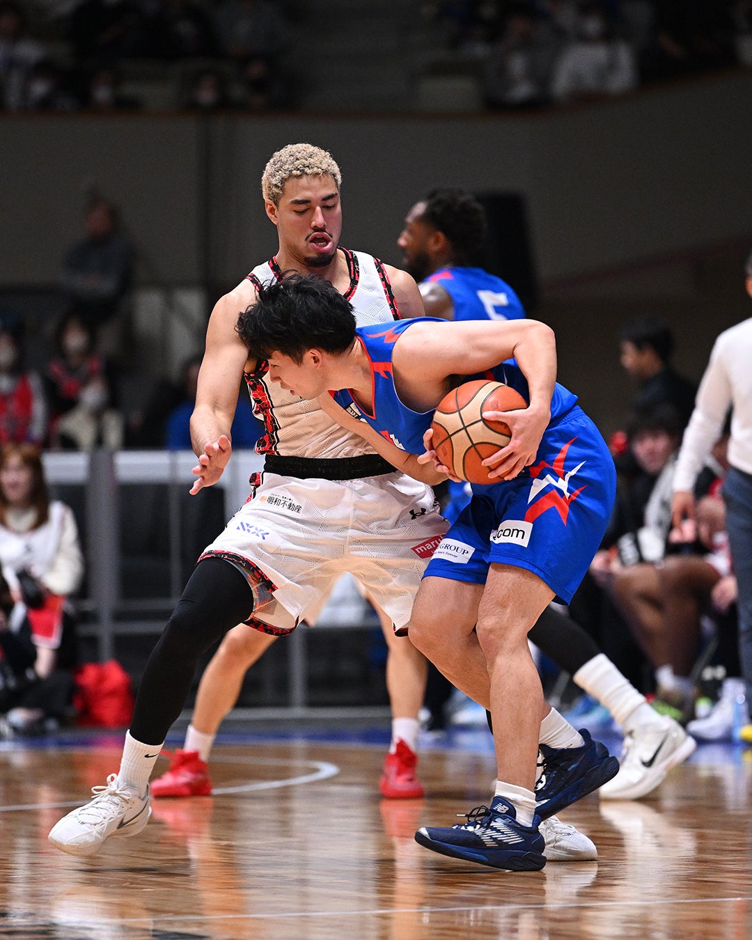 ゲームの入りがあまりいい状態で入れず、追いかける展開となったが、しっかりと4Qで逆転して、クロスゲームに持ち込めたことは、一つ成長があったと思う。 ただ、勝ち切れないという部分で、もう一踏ん張りして、しっかりと成長していかないといけない。 自分たちがやるべきことを徹底することが足りていない。 終盤にいくつかのプレーでミスがあり、各々で反省すべき点があったかもしれないが、ゲームを通じて、オフェンスでもディフェンスでももっとクオリティー高くできる部分がたくさんある。 しっかりと修正して明日のゲームに臨みたい。 出だしは、オフェンスでこれをやろうと言っている事と違うことが起こったり、ディフェンスでも同じようにエラーがあったり、トランジションディフェンスでもエラーがあったりなど、ミスが多く重なった。 (後半の追い上げについて) 後半でディフェンスの強度を上げることができたのが良かった。 今は、今日プレーした選手の中でも怪我をしている選手がいて、40分間通じて高い強度のディフェンスをし続けることがかなり難しい状況で、ゾーンディフェンスを併用したりだとか、いろんなことをやった。 難しい状態の中で、山田選手がステップアップして、いいシュートをいくつか決めてくれたり、モッチ選手もステップアップしてくれたのも非常に大きかった。 十分に戦えるし、十分に勝利できると思うので、あとはどれぐらいチームがそれを信じて、チーム全員でエナジーを出して、オフェンスでもディフェンスでも遂行していくことかということが非常に大切。 あとはこんなに負けてると負け癖じゃないが、一個一個のプレーに対しての執念というか、これぐらいだったらいいかなとか、このプレーだったらいいかなというところが多く、やられ方が簡単すぎたり、ミスの仕方が簡単すぎたりする部分があるので、しっかりと正していきたい。
