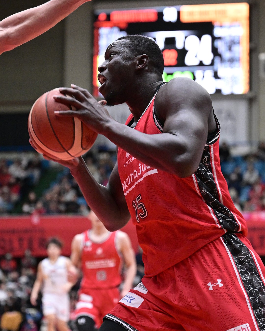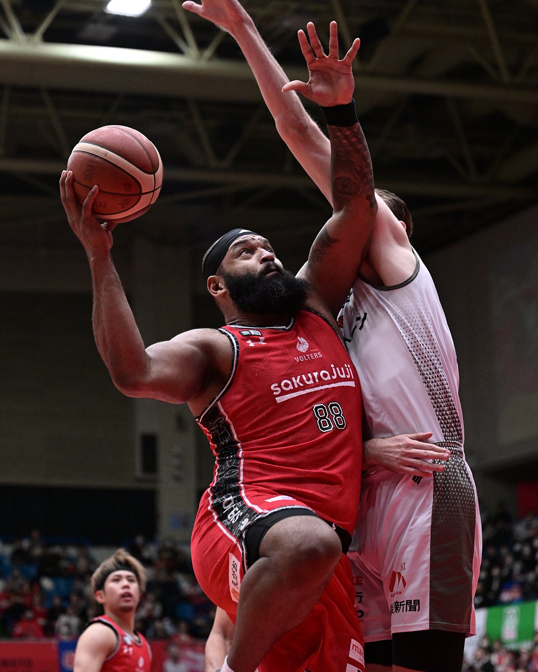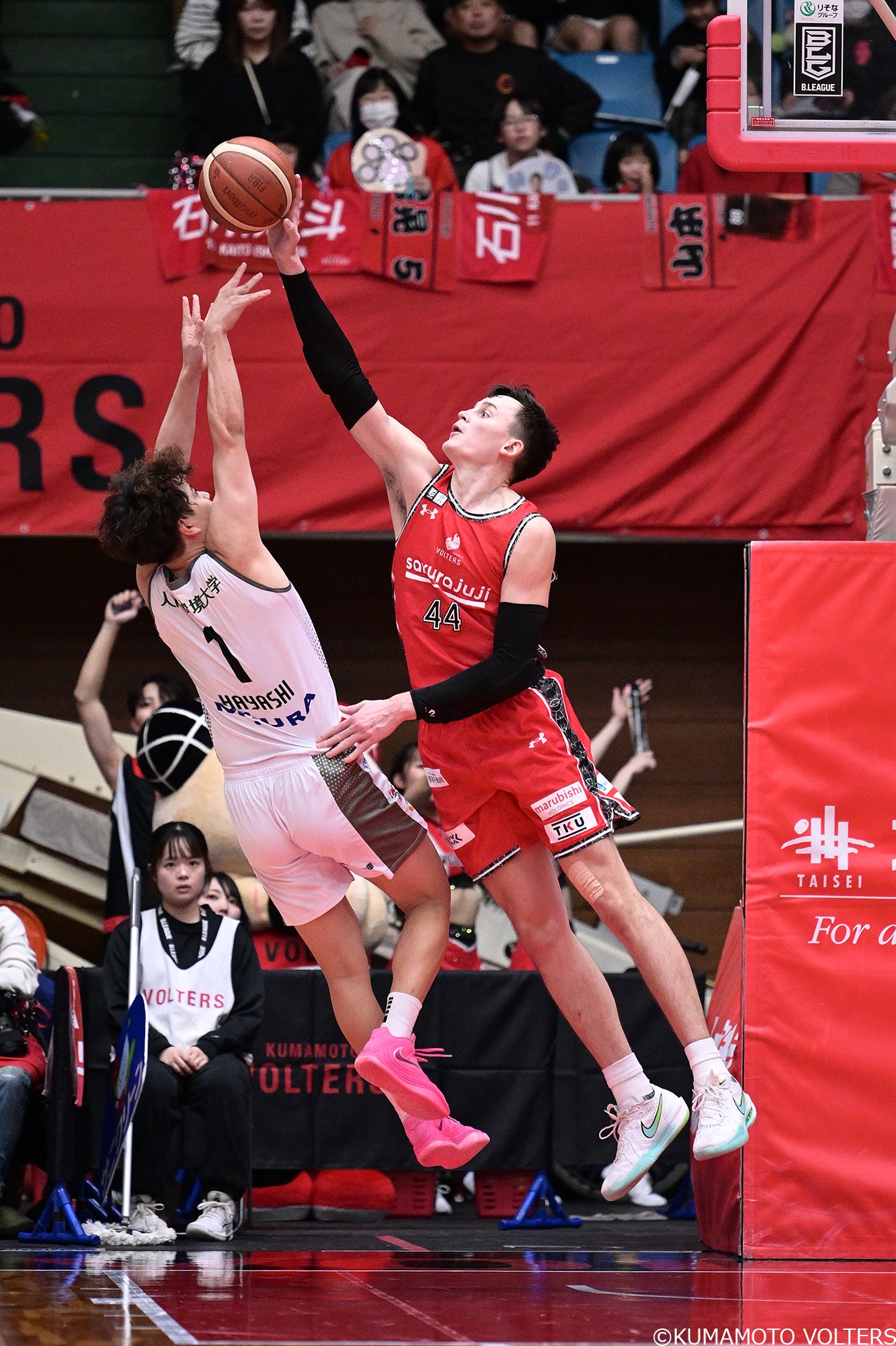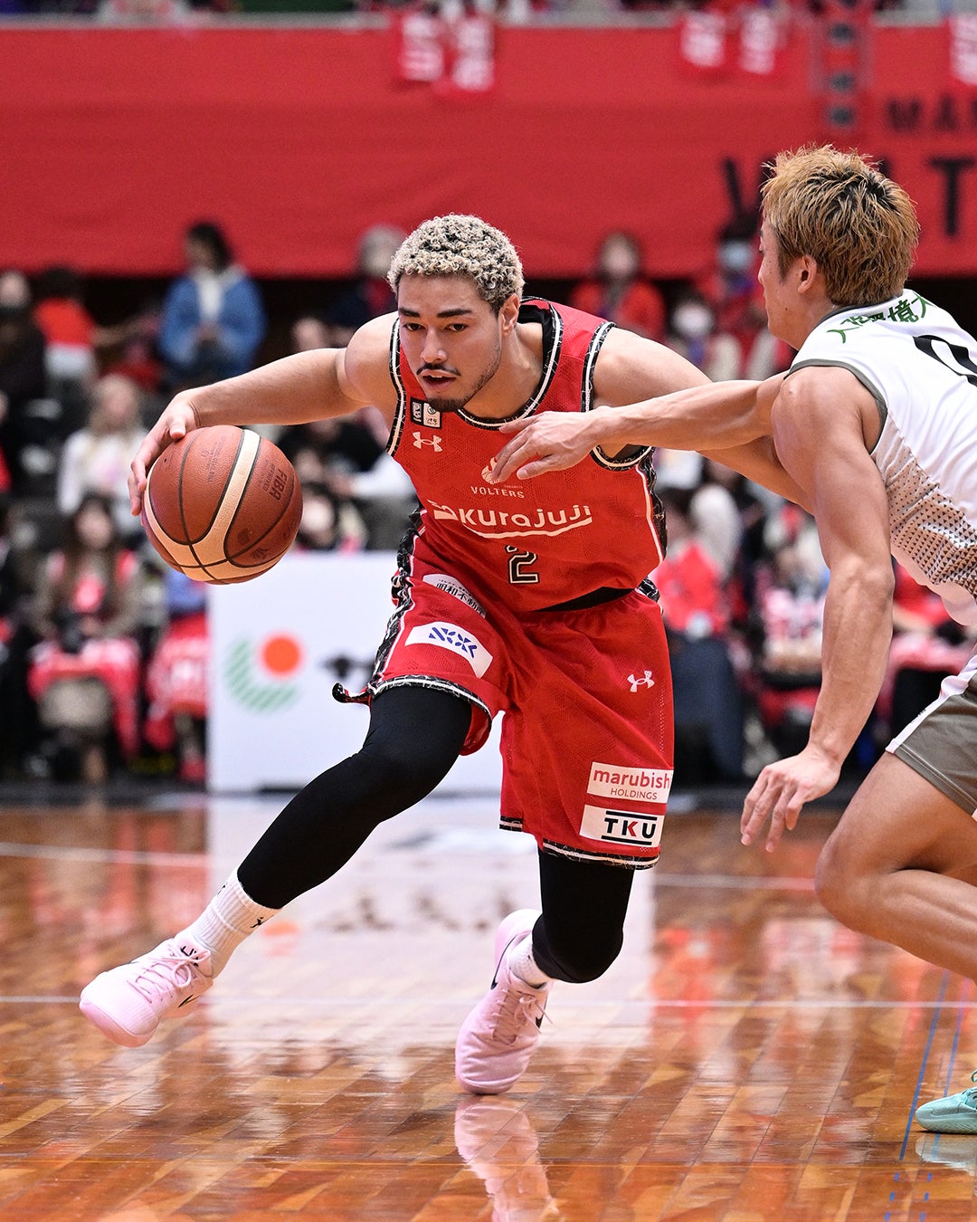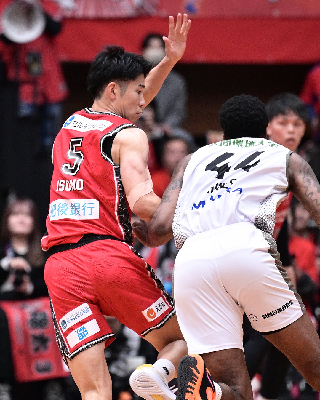 最初から強くファイトでき、今日の勝利につなげることができた。ゲームプランを毎回きちんと実行することが大事だと思う。 第1Q、磯野選手からのパスを受けてのアリウープは、とても良い連携をすることが出来た。 磯野選手はいつもアタックし、ディフェンスを引っ張る仕事が非常に上手だ。 そういったプレーで、私たちが今日の試合に勝つというトーンセットをしてくれ、それをきちんと決めることができた。 リバウンドはチーム全体で見ても42対26で勝っている。私自身も2桁(11本)取れたが、ゴール下でのプレーについて、両チームともすごく強くファイトできていたと思う。ただ、私たちの方が今日ペイントエリアをコントロールすることができて、勝利につながった。 実際にスタッツを見ると、エチェニケ選手とラミン選手が合わせて38分プレイできており、その中で15本のリバウンドも取れた。その2人合わせての結果はやはり大きな意味を持つし、勝利につながった。私たちにとっては非常に大事なリバウンドだった。 (5本のブロックについて) いつも私はチームメイトを助けたいと思ってプレーしており、ショットブロックすることによって、全体の流れを変えることもできる。 また、そこからオフェンスにつなげ、なるべくファストブレイクを狙っていきたいと思っている。そのため、自分にとっては非常に大事な場面だった。 また、献身的にプレーすることは、自分にとってある意味当たり前のことだと思っている。 (石川選手との連携について) オフシーズンに熊本が石川選手とサインしたときからすごくワクワクしていた。 彼は良いパサーで有名で、自分もぜひ彼とプレーしたいと思っていた。 そういう関係を作って連携を高めていくことは、日々の練習や試合、時間を重ねていくことによって、さらにうまく一緒にプレーできるようになってくるので、これからもより良くなっていくと思っている。 そして石川選手はすごく良い先生にもなってくれている。保坂選手は怪我でプレーできていないが、石川選手はいつも保坂選手に対していろいろ教えている。そうやって若手の選手を育ててくれる存在でもあるので、今後も保坂選手や自分が、彼の指導によってより良いプレーができるようになってくるのを楽しみにしている。 熊本ヴォルターズは、日本に来てプレーする機会を与えてくれた。実際に日本に来てみて、すごく良い時間を過ごしており、自分の家族も熊本の皆さんが優しく接してくれて、すごくいい生活を送っている。 もうすぐ娘がここで生まれて生活していくことになるので、このような機会を与えてくれた熊本のために、自分はハードプレーをしないといけないと思っている。 娘が12月末に生まれる予定だ。初めての子供ということですごくワクワクしている。熊本は自分たちにとっては、今まで他にバスケットをプレーした場所よりも、すごく優しくしてくれて、すごくいい時間を過ごしているので、今後もここで子供を育てていくことを楽しみにしている。 実は知り合いからカスタムのバスケットシューズを作ってもらった。娘の名前が入っているが、生まれた後の試合までは履かないことにしている。 今後のシューズに注目していただくと、皆さんの中で誰よりも早く名前を知ることができるので注目してほしい。