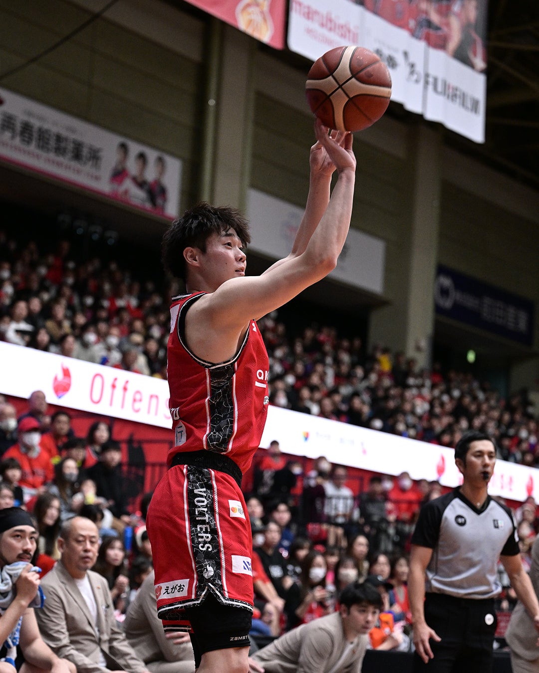 (5本決めたスリーポイントについて) 何よりも今日は自信を持ってプレーすることができた。 スリーポイント自体は打てるが、自分のプレーが色々ある中で、コーチからは普段は違うプレーをするように言われている。 そんな中で、今週は打っていいという後押しもあったので、自信を持ってプレーをした。 チームの勝利に少しでも貢献できたと思っていて、試合後のスピーチで言ったように、やはり勝つことが一番大事なことで、それに必要なシュートだったと思っている。 スペースが十分あったので、まずは打ってみた。自信を持ってプレーした結果、決めることができたと思っている。 (スリーポイント後のセレブレーションについて) 正直、意味は分からないが、以前、山本選手がしているのを見て、山本選手が格好良かったので、自分もやってみたいと思ってやってみた。 (2連勝について) リズムができてきており、私たち全員が自信を持ってプレーをできていると思う。 そして、いい雰囲気も出来上がっているので、それを継続させる必要がある。 継続することにより、新たな成功を作ることができると思っているので、次の練習でも同じように、同じ雰囲気と、自信とリズムを持って挑まなければならない。 連勝を伸ばせるように頑張っていきたい。そして次節ではなるべく、全員が戻って、元気な姿でプレーできるといいなと思う。 (次節アウェー青森戦について) 次回の遠征は移動時間が長いので、今週の練習で、全員が今日と同じように集中し続けていい練習をしたい。いい練習ができると、いい試合につながる。 まずは、みんなが自分の健康を考えなければならない。 みんなが毎日手洗いとうがいをきちんとして、健康で次の遠征を迎えることができれば成功できると思う。
