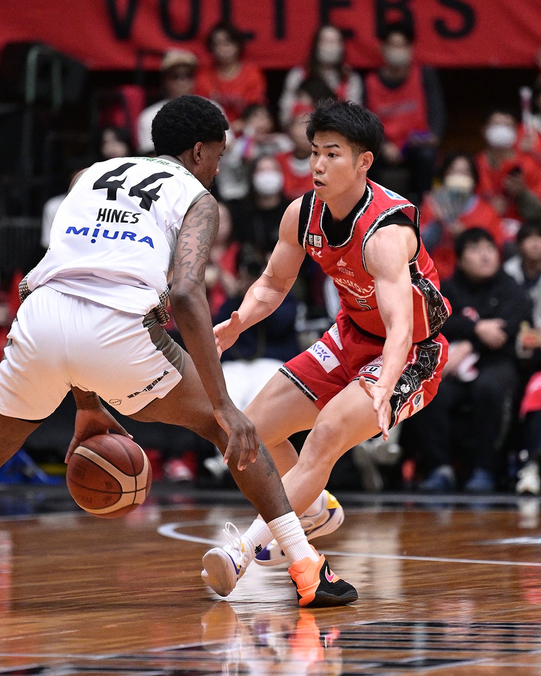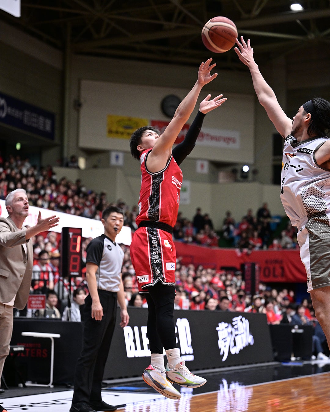 愛媛も難しい状況の中で、すごくタフにアタックしてきたが、ホームで2連勝できたというのはすごく良かった。 2連勝できたのは、遂行力の部分。常に僕は言うようにしているが、「自分が活躍すればいい」わけではなくて、チームが勝つことが全て。 試合を続けていく中で、徐々にチームファーストのプレーが増えてきている。 今日も流れが悪いときは自分勝手なプレーをしていることが多かったが、そういうプレーが少なくなってきており、そこが本当に全てだと思っている。 誰もがシュートは打ちたいし、得点を取りたい。 ただ、チームで作ったシュートの中で得点を取ることが全て正解であり、ただ単に自分が打ちたいタイミングで打つのは違うと思っている。 ずっと勝ちたいがゆえに、タフショットが多かったり、自分のタイミングで打ったりするなどがシーズン最初の方が多かったが、それが本当に少なくなってきている。 (16アシストについて) 別にそこはあまり気にしてないが、ただ単にそのパスを出したのが僕なだけ。 ただ僕は、人よりもアシストに関しては自信を持っている。 愛媛をスカウティングする中で、「ここは狙える」など考えてプレーした。 知識としてもバスケットIQは高い方だと思っているので、うまくいったと思っている。 (シーズンの中盤戦へ向けて) 今日のように、同一カードでの2連勝を続けていかなければいけないと思うし、同じ地区の2位の愛媛に2連勝できたというのは僕らの自信にもなると思う。 だからといって、自分たちがリラックスしてしまうと、また元に戻ってしまうので、勝ったことは良しとして、次の試合をどう自分たちで迎えるかがすごく重要だと思う。 次の試合に向けて準備していきたい。
