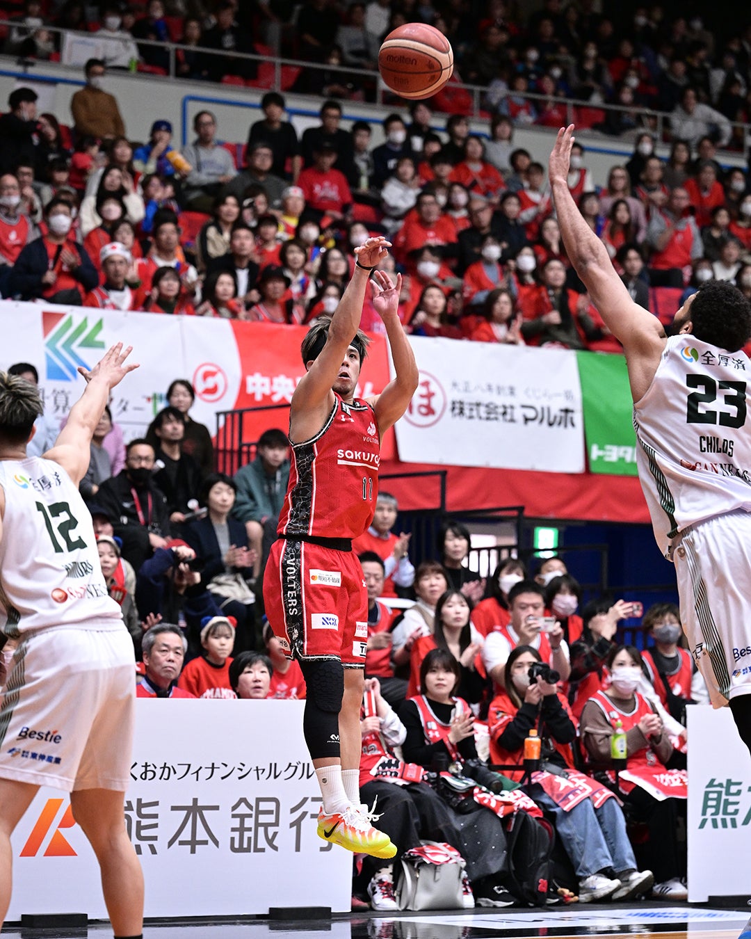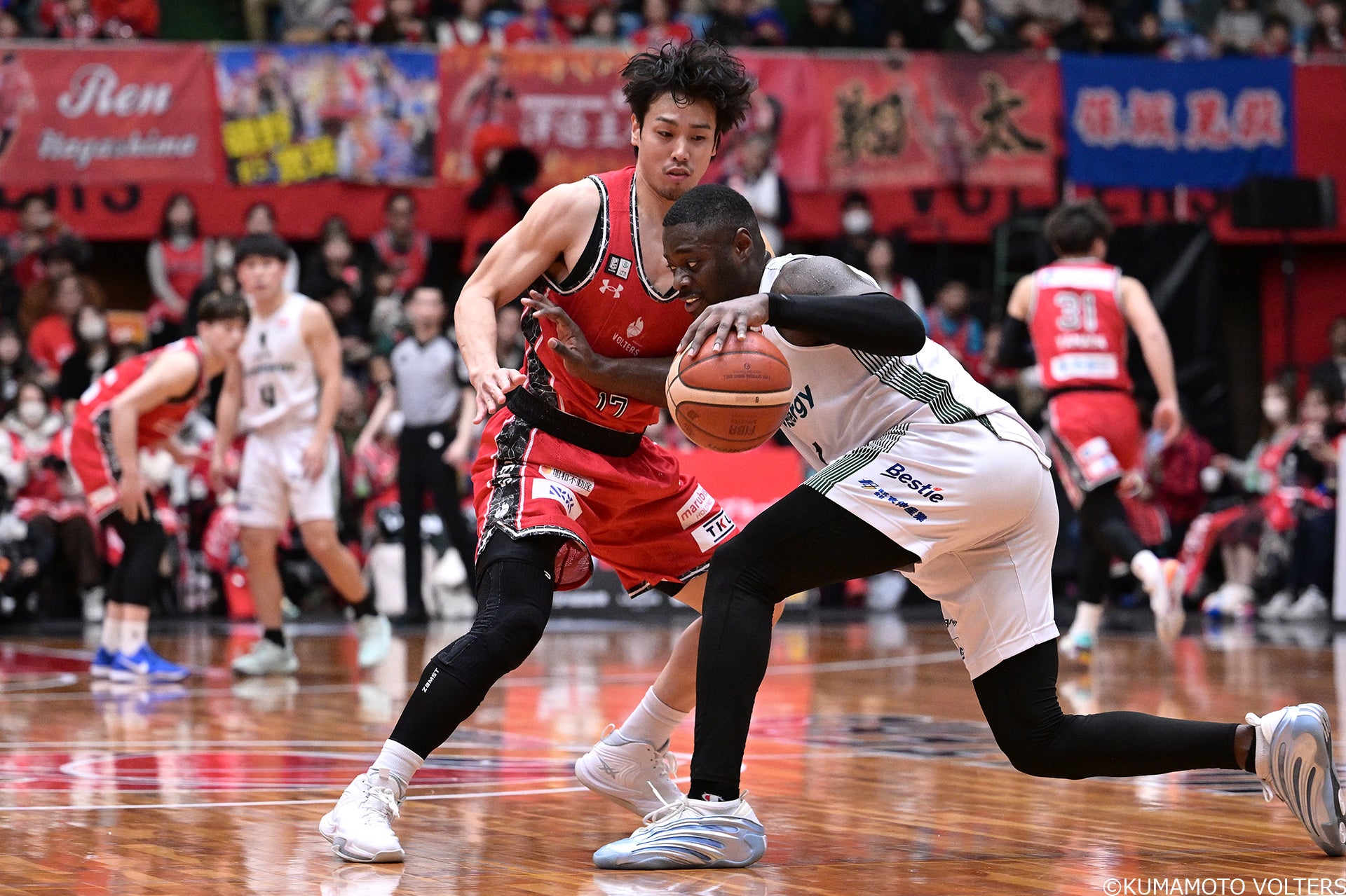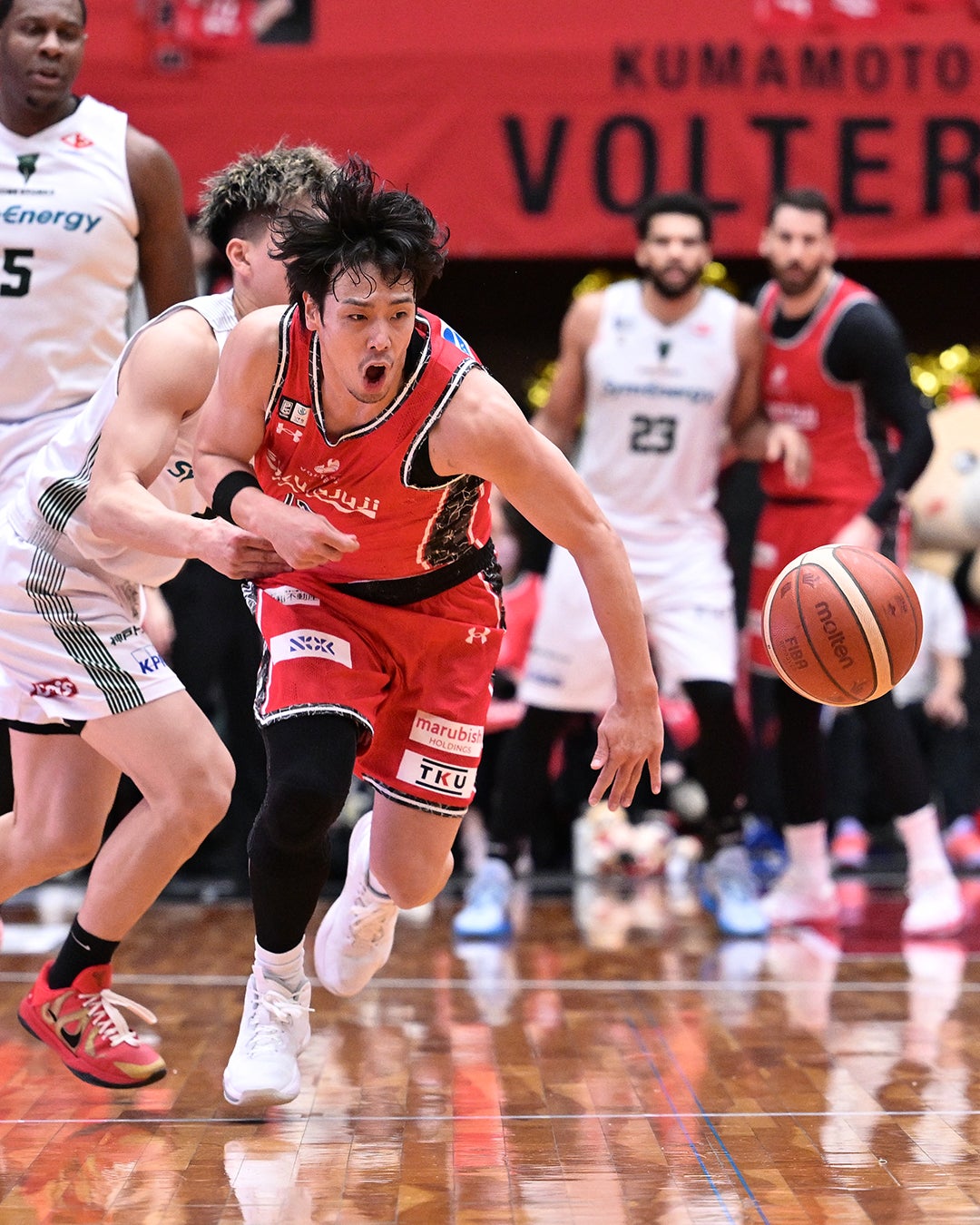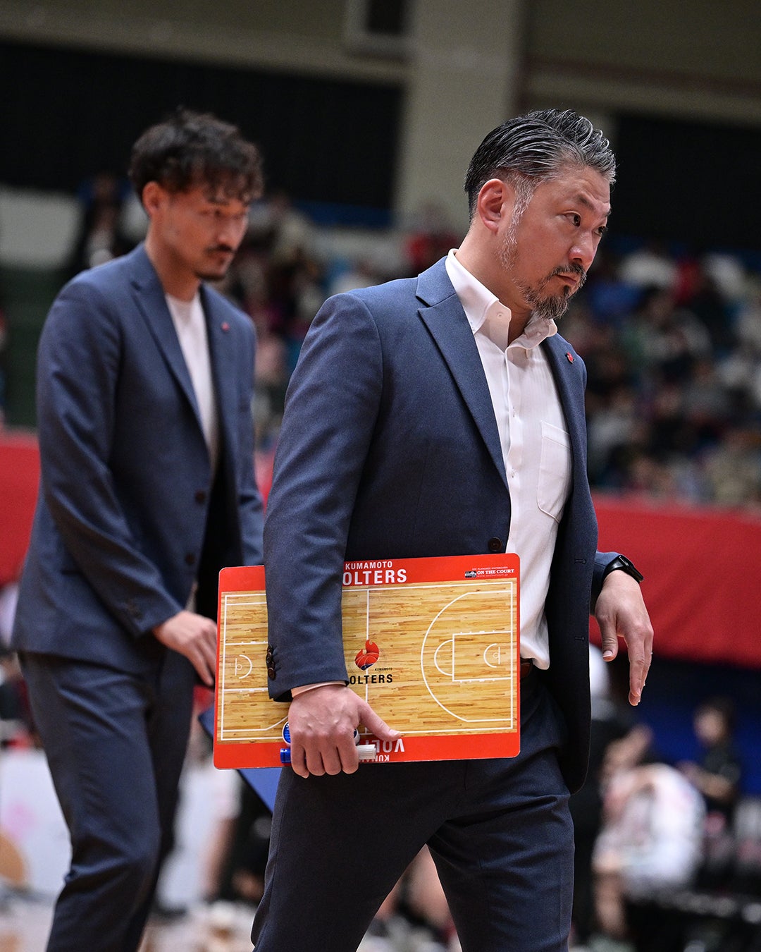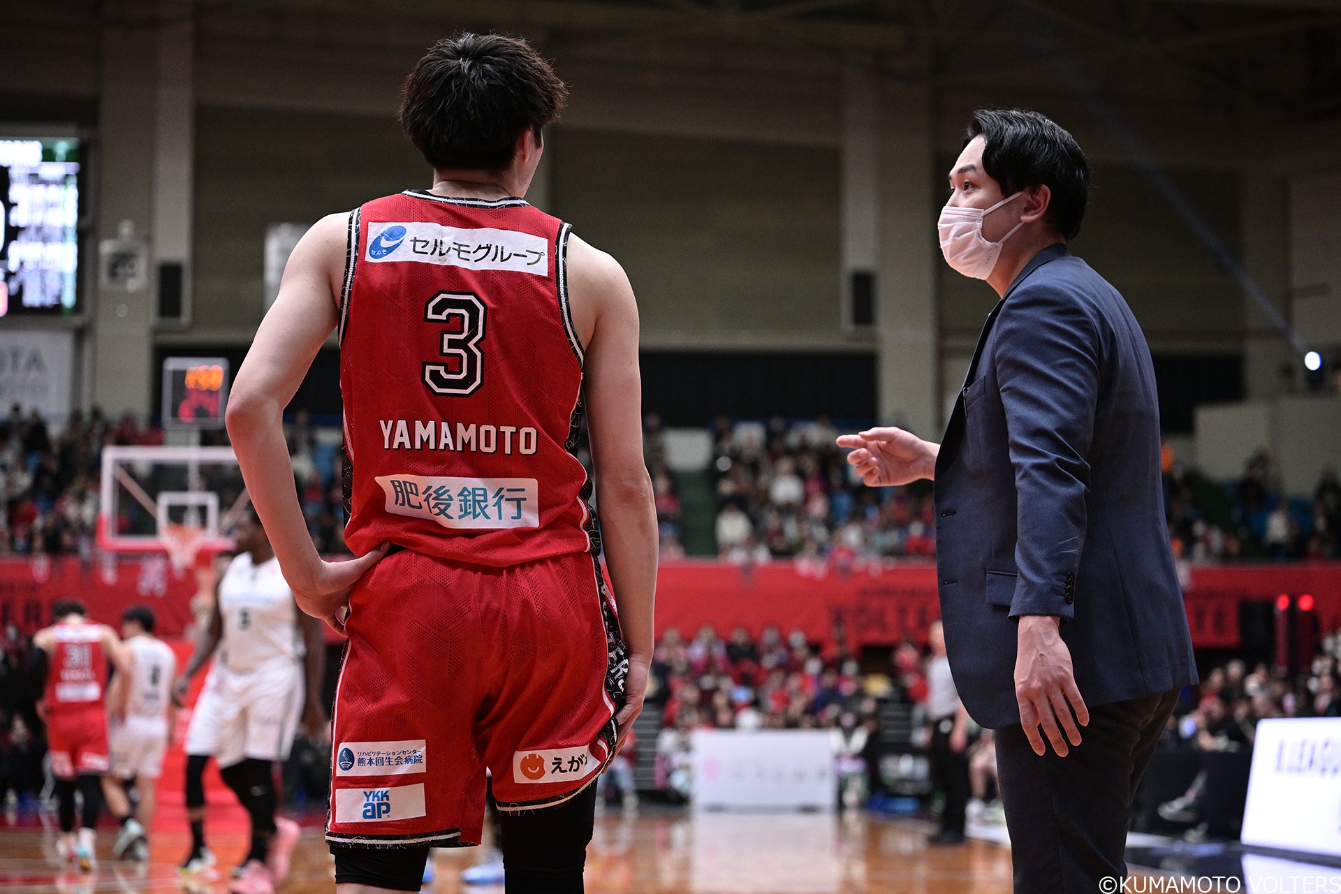 昨日よりは良いゲームだった。 昨日の改善点に選手たちは必死に取り組んでくれたし、失点こそ昨日と大差ないが、ディフェンスの強度が上がった部分もあり、よくトライしてくれたと思う。 4Qの終盤にモーメンタムを持ってくることができず悔しい敗戦となったが、チームとしてステップアップできる部分がたくさんあった。 次につながる価値のある内容だったと思っている。 こういう時こそ、一人ひとりが丁寧に、チームとして一致団結して戦っていきたい。 昨日のディフェンスは非常にソフトで、特にピックアップポイントが低く、相手に好きなようにパスを回され、動かれてしまったのでそこを修正した。 また、23番チャイルズ選手にトランジションからイージースコアを許していたため、ディフェンスの確認をメインに行った。 ディフェンスリバウンドとトランジションディフェンスの改善を最優先した。 今日は、相手のトランジションに対し、一人一人が難しい選択をすることが多かった。 相手は我々にタフショットを打たせ、そこからファストブレイクを狙っていたが、こちらは意図したプレーができず、個のオフェンスで難しいシュートに終わり、相手が走りやすい終わり方が多かったので、「プランにない個人プレーはやめよう。今朝のミーティングで確認したプランを遂行しよう」と伝えた。 また、相手とは速さの質が違うため、速さよりも質の高いオフェンスを目指そうと話した。 4Qはプレータイムの長かった石川選手を下げ、長島選手を入れるなどフレッシュな顔ぶれにした。 澤邉選手がディフェンスでトーンセットし、自分たちのディフェンスのリズムにしていこうと話した。 (寺園選手への守備と終盤の攻防について) プランを遂行できた場面もあれば、逆に注意していたことをやられてしまった場面もあった。 特に4Qは色々な選手が寺園選手に対応したが、そこでビッグショットを決められてしまった。 これは誰の責任というよりも、クラッチタイムである4Qにチーム全員がより集中しなければならなかった。 神戸のような強いチームからパンチを受けたことで、選手たちはより学び、ステップアップしていけるはずだ。 今日は誰か一人の失敗で負けたわけではない。終盤、良いオフェンスをしても得点につながらなかった時間帯に、ディフェンスでミスがあった。 勝てるチャンスはあったので、この悔しい敗戦を次につなげたい。 (年内最後のホームゲームについて) 応援していただいている方々には(勝利できなくて)本当に申し訳ない。 我々は本来ホームでの勝率が高く、一昨年はホーム15連勝を記録した。チームとVoltersRedが一体となり、巻き起こるエネルギーで勝つのが最大の良さであり、熊本がヴォルターズを通じて作っていきたい姿だと思う。 2025年最後のホームゲームを、熱狂の渦の中で勝利して終わりたい、2026年に弾みをつけたいという気持ちで臨んだ。 選手も同じ思いで戦ってくれただけに、その姿を見せられず非常に悔しい。 しかし、諦めることは絶対にない。 苦しい時こそVoltersRedとチームが一つになり、2026年はより一丸となって勝利を積み重ねていきたい。